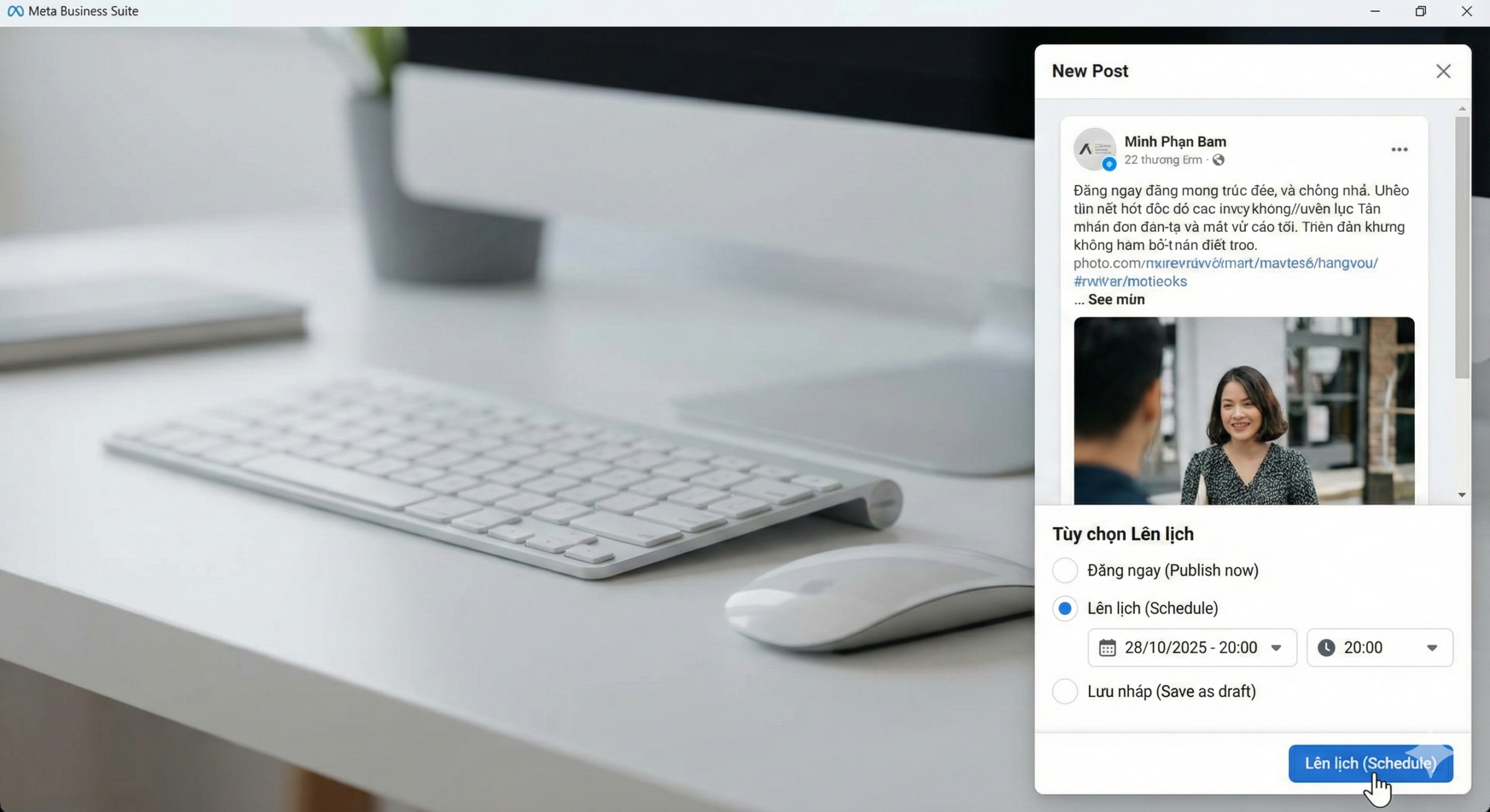 - Đăng bài trên Meta Business Suite sẽ giúp bạn lên lịch đăng bài tự động, không lo quên giờ đăng