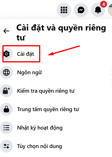 Bước 1: Đăng nhập và truy cập Cài đặt Facebook trên máy tính