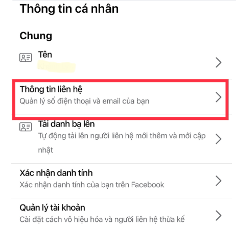 Trong mục trung tâm tài khoản => Chọn thông tin cá nhân => Rồi chọn thông tin liên hệ