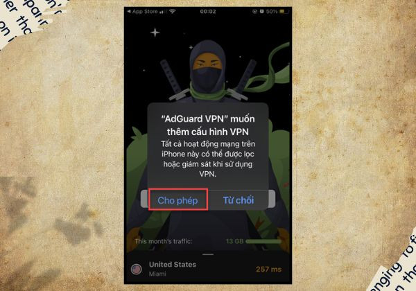 - Bước 5: Khi được hỏi về cấu hình VPN mới, bạn chọn cho phép.