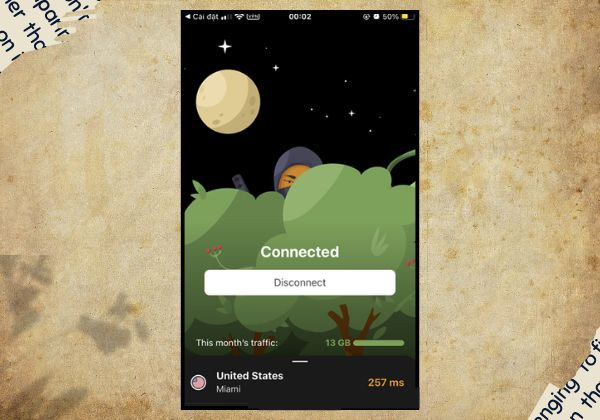 - Bước 6: Sau khi VPN kết nối thành công, màn hình chính sẽ hiển thị trạng thái Connected. Khi muốn dừng sử dụng AdGuard VPN, chỉ cần nhấn Disconnect để ngắt kết nối