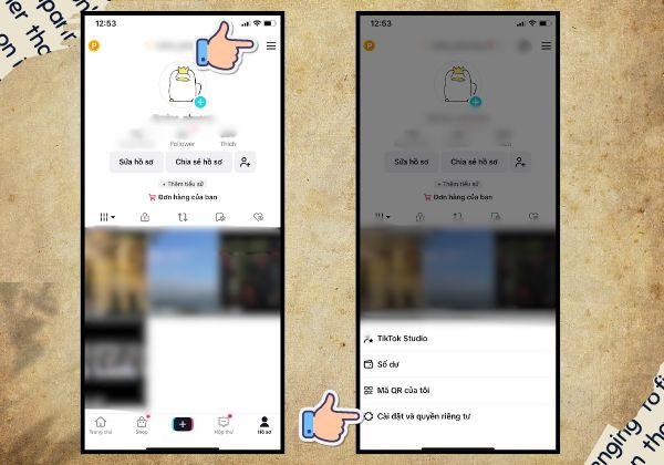 - Bước 2: Nhấn vào biểu tượng ba gạch ở góc trên bên phải màn hình, sau đó truy cập mục Cài đặt và quyền riêng tư.