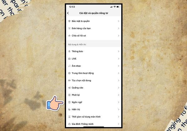 - Bước 3: Chọn mục ”Ngôn ngữ”